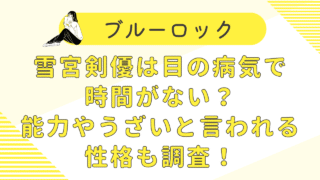 エンタメ ブルーロック雪宮剣優は目の病気で時間がない?うざいと言われる性格も調査! この記事では、ブルーロックに登場する人気キャラクター・雪宮剣優について、彼の目に関する病気や能力、そしてうざいと言われる... 2025.11.28 エンタメ
