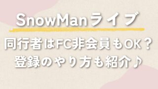 エンタメ SnowManドームツアー2025‐2026同行者はFC非会員もOK?同行者登録のやり方を徹底解説! 2025年〜2026年にかけて開催されるSnow Manの最新ドームツアーは、発表直後から大きな反響を呼び、SNSはもち... 2025.12.05 エンタメ