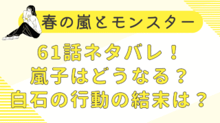 エンタメ 春の嵐とモンスター61話ネタバレ予想!嵐子はどうなる?白石の行動の結末は? 春の嵐とモンスター61話のネタバレ予想を解説。嵐子の安否や栢・南須・白石の関係の変化を60話の内容から考察し、今後の展開や見どころをわかりやすくまとめています。 2026.03.29 エンタメ